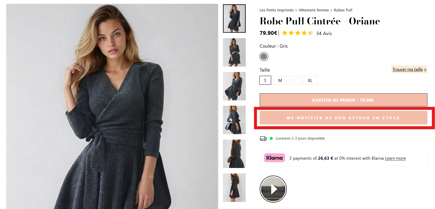 Bonne nouvelle : sur chaque fiche produit en rupture, vous trouverez un bouton "Me notifier de son retour en stock".
